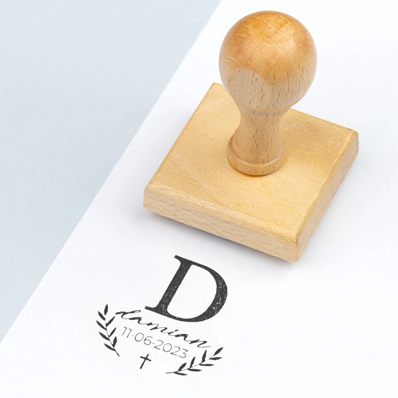 Sellos de madera manuales personalizados. Están fabricados en madera de Haya, hechos con madera de árboles de plantaciones sostenibles, siempre intentamos cuidar al máximo el medio ambiente. Esta madera está barnizada y pulida para un tacto y sujección más agradables. El mango lleva un rebaje para que podáis colocar el dedo cuando lo vayáis a
