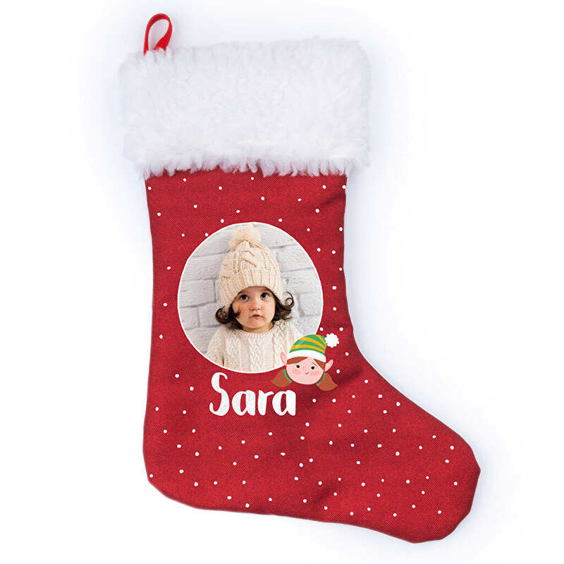 Calcetín navideño personalizado, para colgar en la chimenea o decorar tu casa en Navidad. Personaliza con foto, nombres o el diseño que quieras. Haz que la Navidad sea más especial y crea un calcetín para cada miembro de la familia o para los niños de la casa.