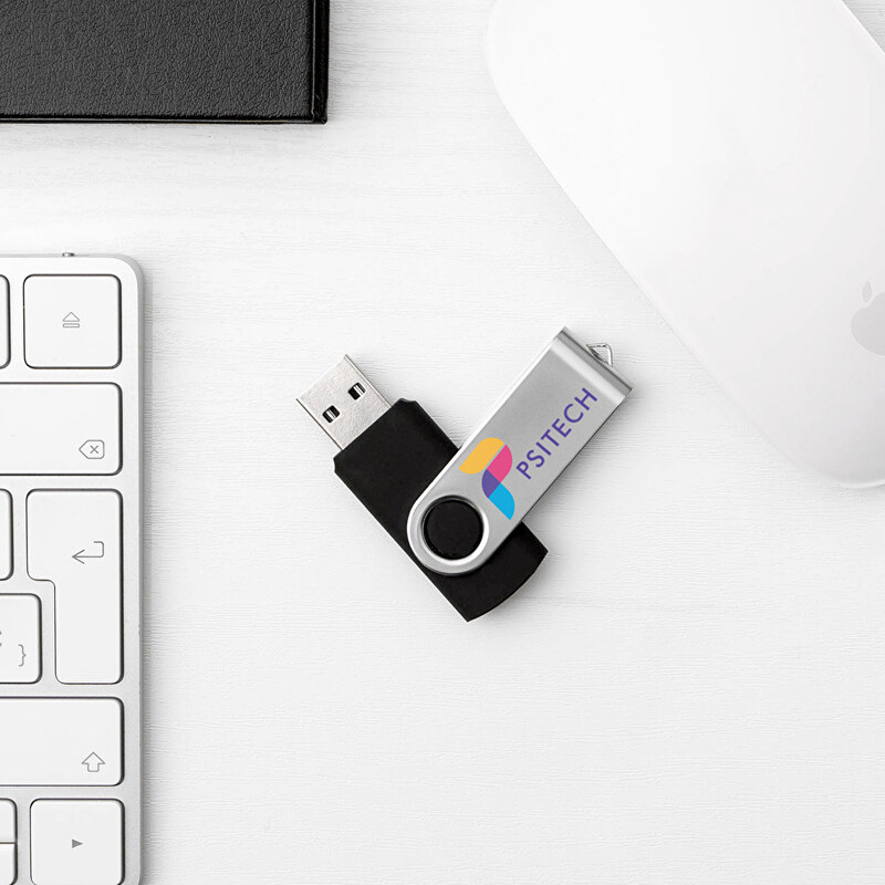 Crea pendrives USB personalizados con la foto, textos, logo o cualquier imagen que quieras, a todo color. Personalización por 1 cara com impresión digital premium. Son memorias USB personalizadas de gran capacidad, 16 GB para cualquier tipo de archivo que quieras guardar. Tiene una carcasa metálica giratoria 360 grados, y no tiene tapa, así nunca…