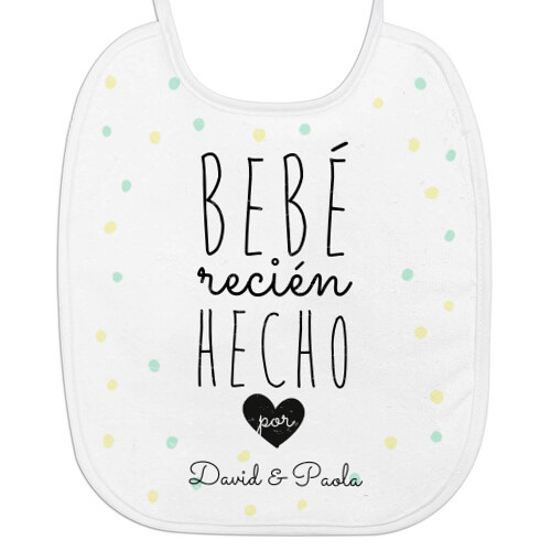 Babero para tu bebé de toalla de rizo, personalizado con un diseño muy divertido “Bebé recién hecho”. Diseño especial para celebrar el día del padre. Hechos de algodón y poliéster. Baberos para recién nacidos, cumpleaños o bautizos