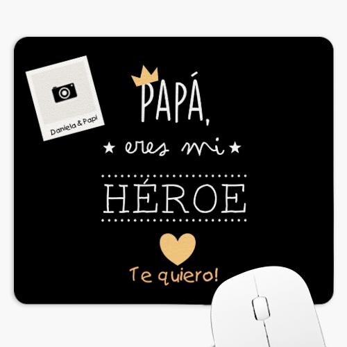 Alfombrilla de ratón personalizada rectangular con nuestro diseño “Papá, eres mi héroe”. Crea tus propia alfombrilla de ratón original, con la foto o el diseño que quieras. Ideal para oficina y hogar. Medidas: 23,5 x 19,5 cm. Base hecha de material antideslizante. Esquinas redondeadas. Impresión nítida a todo color.