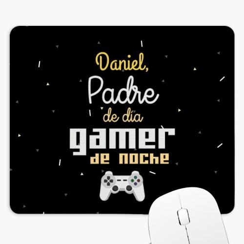 Alfombrilla de ratón personalizada rectangular con nuestro diseño “Padre de día, Gamer de noche”. Crea tus propia alfombrilla de ratón original, con la foto o el diseño que quieras. Ideal para oficina y hogar. Medidas: 23,5 x 19,5 cm. Base hecha de material antideslizante. Esquinas redondeadas. Impresión nítida a todo color.