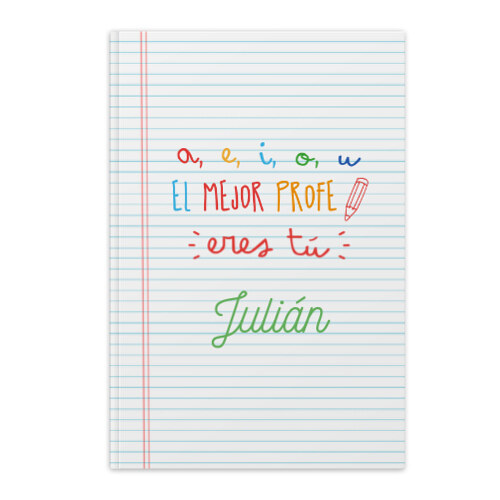 Agenda personalizada con tapa flexible. En sus páginas interiores está la clásica agenda por días, con una vista previa del mes entero en pequeño en la esquina.