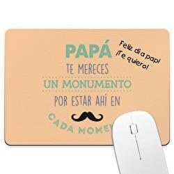 Alfombrilla de ratón personalizada rectangular con nuestro diseño “Papá, te mereces un monumento”. Crea tus propia alfombrilla de ratón original, con la foto o el diseño que quieras. Ideal para oficina y hogar. Medidas: 23,5 x 19,5 cm. Base hecha de material antideslizante. Esquinas redondeadas. Impresión nítida a todo color.