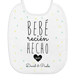Babero para tu bebé de toalla de rizo, personalizado con un diseño muy divertido “Bebé recién hecho”. Diseño especial para celebrar el día del padre. Hechos de algodón y poliéster. Baberos para recién nacidos, cumpleaños o bautizos