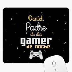 Alfombrilla de ratón personalizada rectangular con nuestro diseño “Padre de día, Gamer de noche”. Crea tus propia alfombrilla de ratón original, con la foto o el diseño que quieras. Ideal para oficina y hogar. Medidas: 23,5 x 19,5 cm. Base hecha de material antideslizante. Esquinas redondeadas. Impresión nítida a todo color.