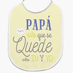 Babero para tu bebé de toalla de rizo, personalizado con un diseño muy divertido “Papá, que esto se quede entre tú y yo”. Diseño especial para celebrar el día del padre. Hechos de algodón y poliéster. Baberos para recién nacidos, cumpleaños o bautizos