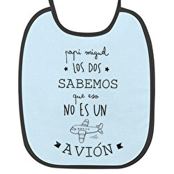 Babero para tu bebé de toalla de rizo, personalizado con un diseño muy divertido “Papi, los dos sabemos que eso no es un avión”. Diseño especial para celebrar el día del padre. Hechos de algodón y poliéster. Baberos para recién nacidos, cumpleaños o bautizos