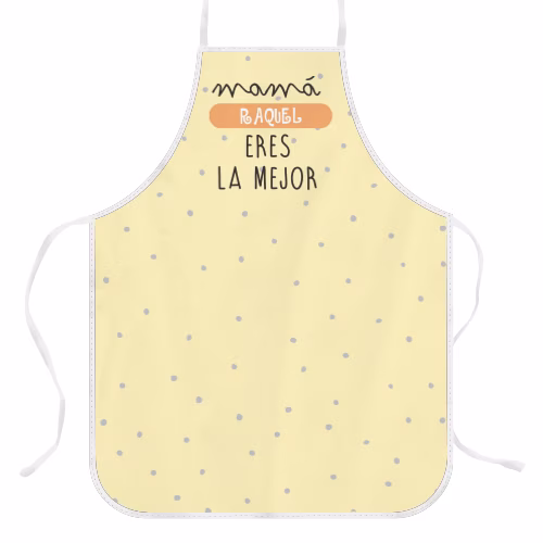 Delantal Personalizado con Diseño “Mamá, eres la mejor”. Crea tu propio delantal personalizado, con cualquier foto, collage de fotos, diseño, frases, el nombre del cocinero, etc. Puedes personalizar el 100% del delantal por la parte frontal. Está hecho en tela Panamá impermeable, de alta calidad y resistente. Medidas delantal adulto: 62×82 cm. Apto para lavadora.