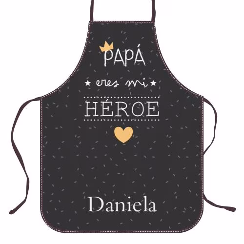 Delantal Personalizado con Diseño “Papá, eres mi héroe”. Crea tu propio delantal personalizado, con cualquier foto, collage de fotos, diseño, frases, el nombre del cocinero, etc. Puedes personalizar el 100% del delantal por la parte frontal. Está hecho en tela Panamá impermeable, de alta calidad y resistente. Medidas delantal adulto: 62×82 cm. Apto para lavadora.