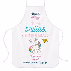 Delantal Personalizado con Diseño “Mamá, tu no brillas, deslumbras”. Crea tu propio delantal personalizado, con cualquier foto, collage de fotos, diseño, frases, el nombre del cocinero, etc. Puedes personalizar el 100% del delantal por la parte frontal. Está hecho en tela Panamá impermeable, de alta calidad y resistente. Medidas delantal adulto: 62×82 cm. Apto para…