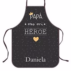 Delantal Personalizado con Diseño “Papá, eres mi héroe”. Crea tu propio delantal personalizado, con cualquier foto, collage de fotos, diseño, frases, el nombre del cocinero, etc. Puedes personalizar el 100% del delantal por la parte frontal. Está hecho en tela Panamá impermeable, de alta calidad y resistente. Medidas delantal adulto: 62×82 cm. Apto para lavadora.