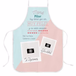 Delantal Personalizado con Diseño “Te queremos, madre”. Crea tu propio delantal personalizado, con cualquier foto, collage de fotos, diseño, frases, el nombre del cocinero, etc. Puedes personalizar el 100% del delantal por la parte frontal. Está hecho en tela Panamá impermeable, de alta calidad y resistente. Medidas delantal adulto: 62×82 cm. Apto para lavadora.