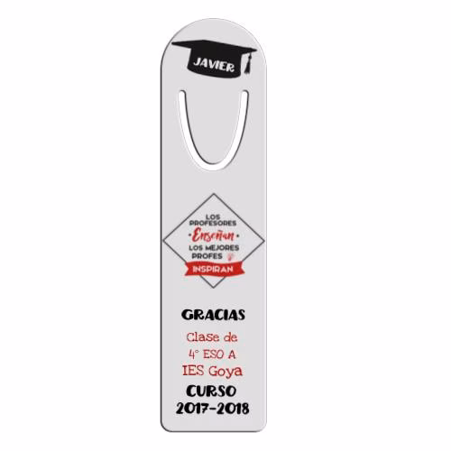Marcapáginas de aluminio personalizado con diseño especial para nuestr@ profe favorito. Con el texto o la fato que tu quieras. Un regalo perfecto para los amantes de la lectura. Con descuentos por cantidad. Envío en 24 horas.