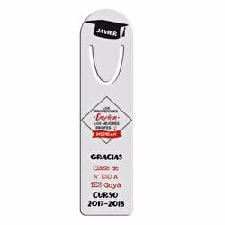 Marcapáginas de aluminio personalizado con diseño especial para nuestr@ profe favorito. Con el texto o la fato que tu quieras. Un regalo perfecto para los amantes de la lectura. Con descuentos por cantidad. Envío en 24 horas.