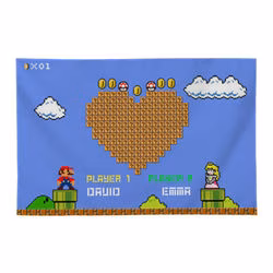 Manta polar personalizada 100% poliéster. Personaliza tu manta con nuestro diseño gamer especial para San Valentín. Medidas 750X900 mm. Apta para lavadora y plancha. No recomendable secadora. Peso/m2: 300gr. Afelpado convencional. No peelling garantizado. Impresión de manta con foto por sublimación.