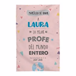 Manta polar personalizada 100% poliéster. Personaliza tu manta con nuestro diseño “la mejor profe del mundo entero”. Medidas 750X900 mm. Apta para lavadora y plancha. No recomendable secadora. Peso/m2: 300gr. Afelpado convencional. No peelling garantizado. Impresión de manta con foto por sublimación.