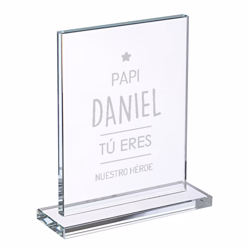 Trofeo grabado rectangular con diseño especial para día del padre. El trofeo tiene forma rectangular y tiene una base más ancha que la propia placa (también en forma de rectángulo) para que se sujete perfectamente. El grabado a láser que se realiza sobre el trofeo es de gran calidad y hará que elijas el diseño…