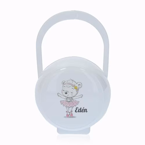 Guarda chupetes personalizados con diseño de animal “Osita bailarina”. Ahora puedes crear su propio portachupetes personalizado poniendo el nombre del bebé o su fecha de nacimiento, entre otras muchas opciones. Porque con nosotros puedes cuidar cada detalle y hacerlo tal y como desees. Esta cajita guarda chupetes está hecha de plástico resistente, incluye asa para…
