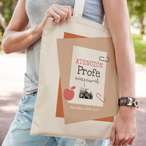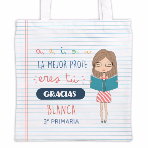 Bolsa de Tela Personalizada Tote Bag con diseños especial para profesoras y maestras. Este bolsa de tela personalizada está muy de moda, y consiste en un bolso grande, de forma rectangular, con prácticas asas para llevar en la mano o colgado del hombro. Tamaño de 41X65 cm. Un regalo original y práctico.