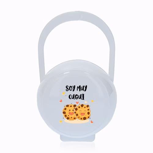 Guarda chupetes personalizados con diseño divertido “¨Soy muy cuqui”. Ahora puedes crear su propio portachupetes personalizado poniendo el nombre del bebé o su fecha de nacimiento, entre otras muchas opciones. Porque con nosotros puedes cuidar cada detalle y hacerlo tal y como desees. Esta cajita guarda chupetes está hecha de plástico resistente, incluye asa para…