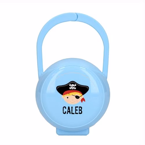 Guarda chupetes personalizados con diseño divertido “¨Pirata”. Ahora puedes crear su propio portachupetes personalizado poniendo el nombre del bebé o su fecha de nacimiento, entre otras muchas opciones. Porque con nosotros puedes cuidar cada detalle y hacerlo tal y como desees. Esta cajita guarda chupetes está hecha de plástico resistente, incluye asa para poder colgar…