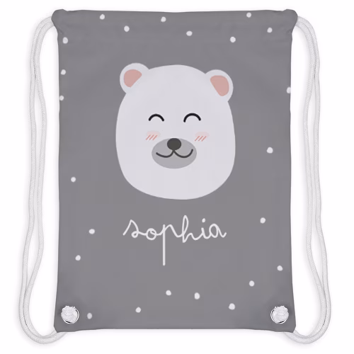 Mochilas de cuerdas infantiles personalizadas con diseño “Polar”. Perfectas para llevar el almuerzo al colegio, escuela o guardería; o a las actividades extraescolares. Puedes personalizar por las 2 caras, y con impresión total, El interior es impermeable, para una fácil limpieza, y para proteger la mochila de escapes de líquidos de bebidas en el interior….