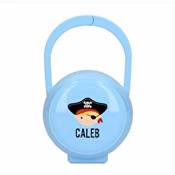 Guarda chupetes personalizados con diseño divertido “¨Pirata”. Ahora puedes crear su propio portachupetes personalizado poniendo el nombre del bebé o su fecha de nacimiento, entre otras muchas opciones. Porque con nosotros puedes cuidar cada detalle y hacerlo tal y como desees. Esta cajita guarda chupetes está hecha de plástico resistente, incluye asa para poder colgar…