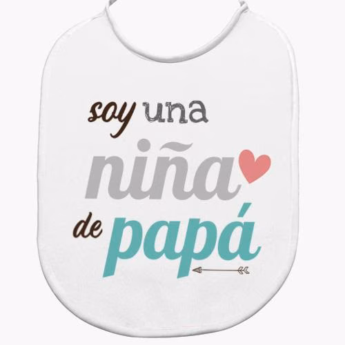 Babero para tu bebé de toalla de rizo, personalizado con un diseño muy divertido “Soy una niña de papá”. Diseño especial para celebrar el día del padre. Hechos de algodón y poliéster. Baberos para recién nacidos, cumpleaños o bautizos