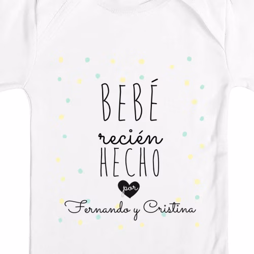 Body personalizado de manga larga con nuestro diseño “Bebé recién hecho”. Body 100% de Algodón y con corchete en la entrepierna. Tallas de 3 a 24 meses. Impresión digital de alta calidad. Haz un regalo original y único.