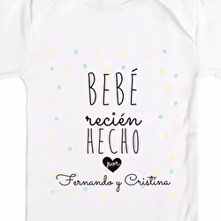 Body personalizado de manga larga con nuestro diseño “Bebé recién hecho”. Body 100% de Algodón y con corchete en la entrepierna. Tallas de 3 a 24 meses. Impresión digital de alta calidad. Haz un regalo original y único.