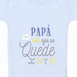 Body de bebé personalizado con un diseño especial para el día del padre. Añade el nombre que tu desees y haz un regalo único y original. Bodys 100% algodón, con tres colores a elegir (rosa, blanco y azul) y tallas de 3 a 24 meses. Impresión digital de alta calidad. Apto para la lavadora y…