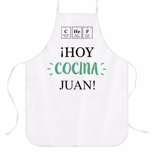 Delantal Personalizado con Diseño “Hoy cocina…”. Regalo especial para el día del padre. Crea tu propio delantal personalizado con el nombre o la foto de tu papá o abuelo. Puedes personalizar el 100% del delantal por la parte frontal. Está hecho en tela Panamá impermeable, de alta calidad y resistente. Medidas delantal adulto: 62×82 cm….