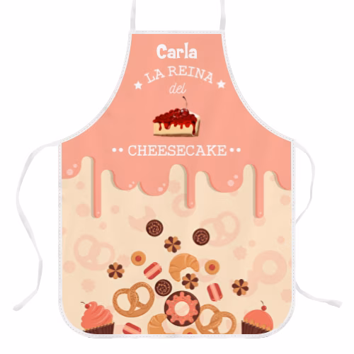 Delantal Personalizado con Diseño “La reina del cheesecake”. Crea tu propio delantal personalizado, con cualquier foto, collage de fotos, diseño, frases, el nombre del cocinero, etc. Puedes personalizar el 100% del delantal por la parte frontal. Está hecho en tela Panamá impermeable, de alta calidad y resistente. Medidas delantal adulto: 62×82 cm. Apto para lavadora.
