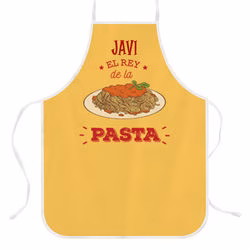 Delantal Personalizado con Diseño “El rey de la pasta”. Crea tu propio delantal personalizado, con cualquier foto, collage de fotos, diseño, frases, el nombre del cocinero, etc. Puedes personalizar el 100% del delantal por la parte frontal. Está hecho en tela Panamá impermeable, de alta calidad y resistente. Medidas delantal adulto: 62×82 cm. Apto para…