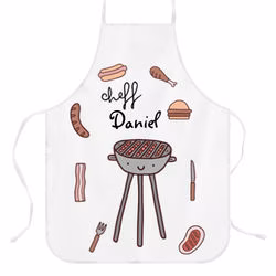 Delantal Personalizado con Diseño “Cheff Bbq”. Crea tu propio delantal personalizado, con cualquier foto, collage de fotos, diseño, frases, el nombre del cocinero, etc. Puedes personalizar el 100% del delantal por la parte frontal. Está hecho en tela Panamá impermeable, de alta calidad y resistente. Medidas delantal adulto: 62×82 cm. Apto para lavadora.