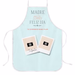 Delantal Personalizado con Diseño “Madre mía, Feliz día”. Crea tu propio delantal personalizado, con cualquier foto, collage de fotos, diseño, frases, el nombre del cocinero, etc. Puedes personalizar el 100% del delantal por la parte frontal. Está hecho en tela Panamá impermeable, de alta calidad y resistente. Medidas delantal adulto: 62×82 cm. Apto para lavadora.