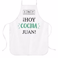 Delantal Personalizado con Diseño “Hoy cocina…”. Regalo especial para el día del padre. Crea tu propio delantal personalizado con el nombre o la foto de tu papá o abuelo. Puedes personalizar el 100% del delantal por la parte frontal. Está hecho en tela Panamá impermeable, de alta calidad y resistente. Medidas delantal adulto: 62×82 cm….