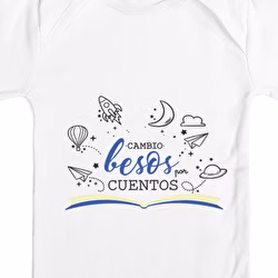 Body personalizado de manga larga con nuestro diseño “Cambio besos por cuentos”. Body 100% de Algodón y con corchete en la entrepierna. Tallas de 3 a 24 meses. Impresión digital de alta calidad. Haz un regalo original y único.