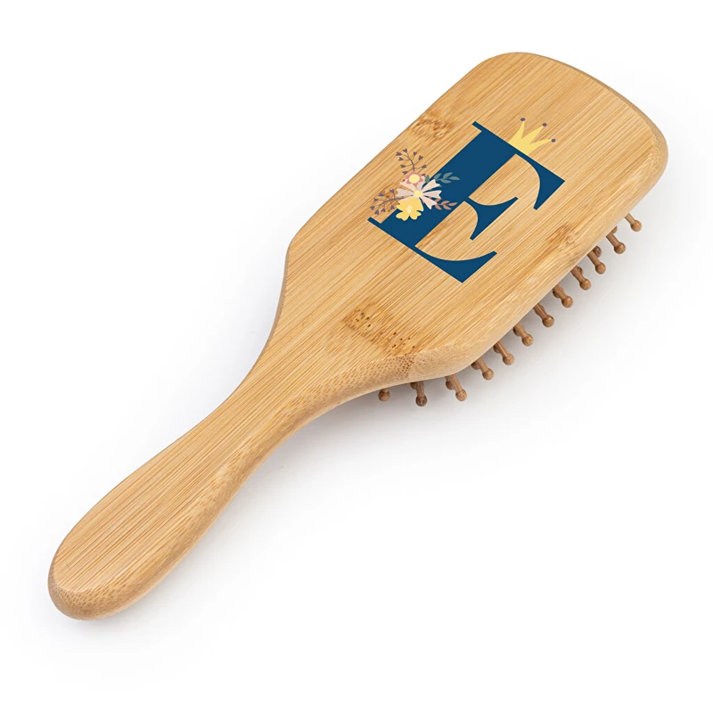Cepillo personalizado hecho con bambú. Este cepillo forma parte de nuestra línea de productos naturales, pues está hecho en madera de bambú pulido. Así, se fomenta la utilización de materias primas naturales, reduciendo las emisiones contaminantes de otros materiales. Las púas o cerdas son de madera también, y acaban en forma redondeada, para que así