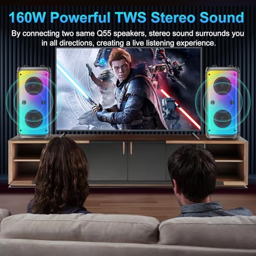 Compatible con El Sistema Estéreo TWS: Empareja 2 de los altavoces inalámbricos portátiles TAMPROAD Q55 con luces para obtener la función TWS y una experiencia de audio totalmente envolvente y espacial. Tanto si lo usas para karaoke como para reproducir música, la función de sonido envolvente estéreo TWS llevará tu experiencia de audio al siguiente nivel. Dejará boquiabiertos a sus amigos y familiares.