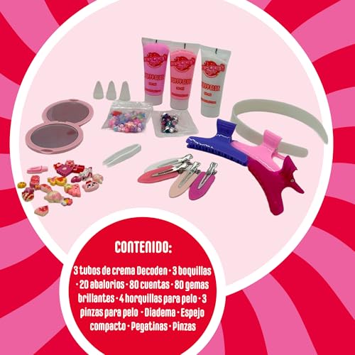Bizak Decoden Magic Deluxe, Pack para diseñar infinito, Crema Falsa Batida, Buttercream para decorar, abalorios, cuentas y accesorios de pelo y espejo, +4 años, (64484131)