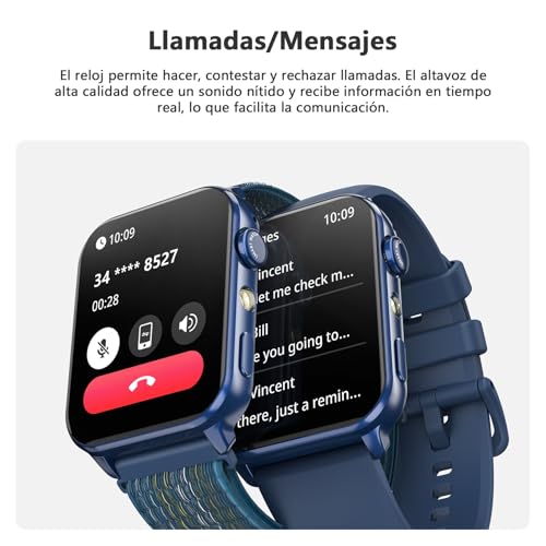【Muchas funciones útiles】Este reloj inteligente incluye clima, control de cámara, control de música, alivio del estrés y ayuda para dormir, asistente de voz, temporizador, despertador, cronómetro, período menstrual, linterna, buscador de teléfono, calculadora, juegos, registros de ejercicio, ajuste de brillo, tiempo de apagado de pantalla, etc. ¡Tiene todas las herramientas que necesitas para la vida diaria!
