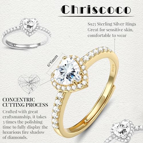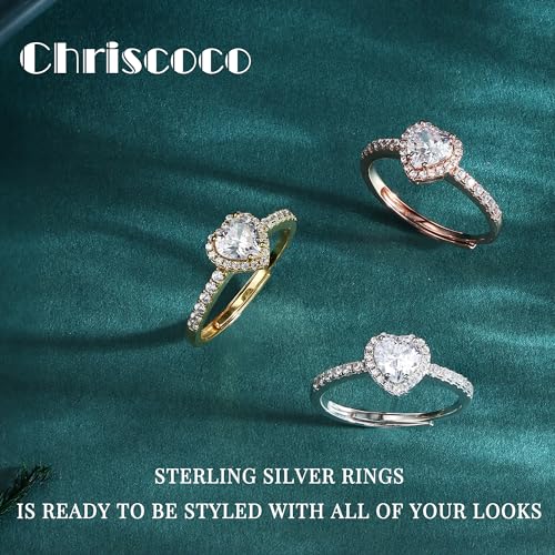 Chriscoco Anillos Mujer Plata de Ley 925 Anillo Corazon Zirconia Cúbica Ajustables Mujer Anillos Anillo de Compromiso Anillos Promesa Boda Aniversario Anillos Plata/Oro/Oro Rosa con Caja de Joyería