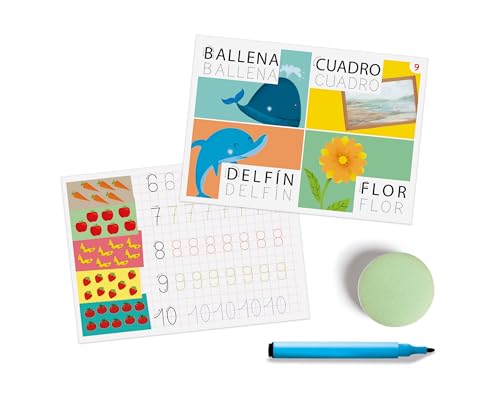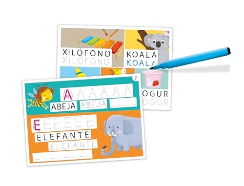 Rotulador especial incluido: viene con un rotulador borrable adaptado a las manos pequeñas, ideal para mejorar la motricidad fina y el control del trazo.