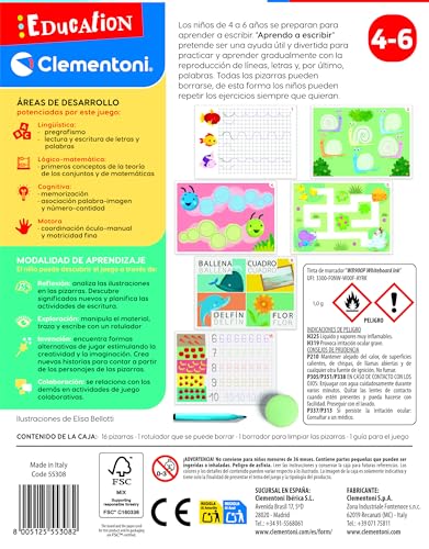 Clementoni – Aprendo a Escribir – Juego Educativo Infantil a Partir de 5 años – Pizarras Reutilizables con Rotulador Borrable – Aprendizaje de Letras y Palabras, Desarrolla la Escritura, 55308