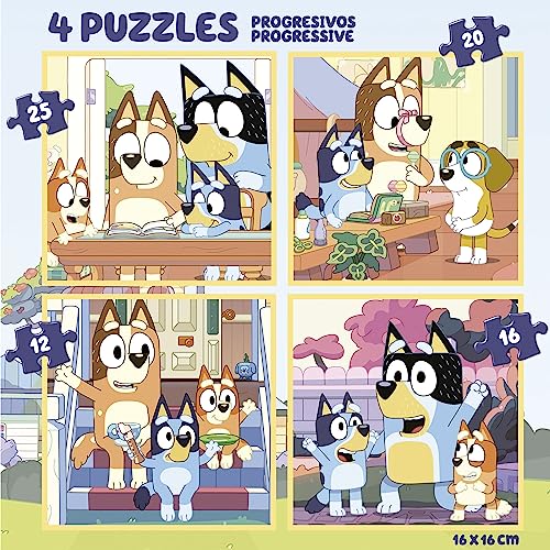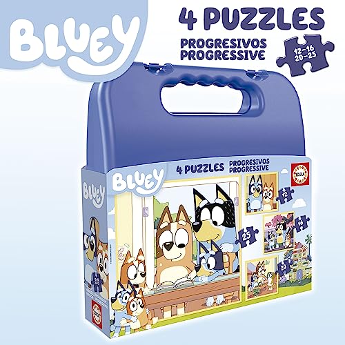 Educa – Set de Cuatro Puzzles progresivos de 12 a 25 Piezas con los Personajes de Bluey | Presentados en una magnífica Maleta para Poder guardarlos. Recomendados a Partir de 3 años (19830)