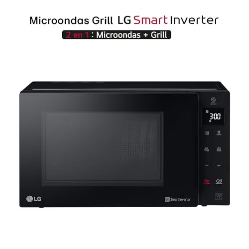 LG MH6535GIB – Microondas con grill, 1000 W, Smart Inverter, Display digital, Color Negro Transparente, 1000 W, 25 l