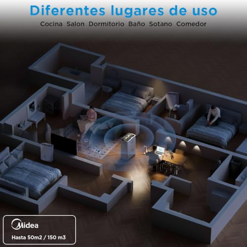 Midea Deshumidificador de Humedad 20L Silencioso | WiFi/App, Modo Secado de Ropa y Auto Antihumedad, Purificador Eléctrico Antibacterias, moho y Condensación | Ideal en habitaciones hasta 50m2/150m3