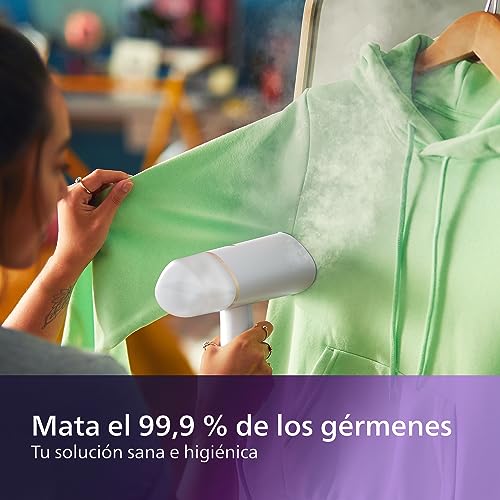 Philips Serie 3000 Plancha vertical-Vaporizador -1000 W, 20 g/min de vapor, Depósito de agua de 120 ml extraíble, Diseño compacto y plegable ideal para viajar, Blanca (STH3020/10)
